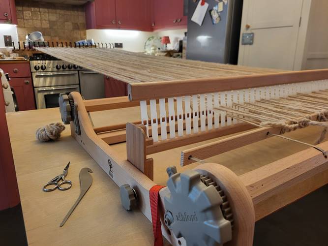 7.Then the yarn is woven on a rigid heddle weaving loom to make a blanket.