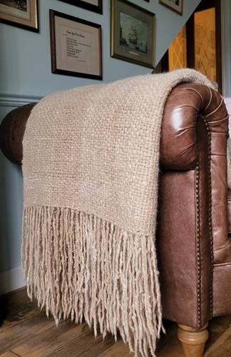Each one takes about 1.8 kg of fibre to make a cosy winter weight blanket.