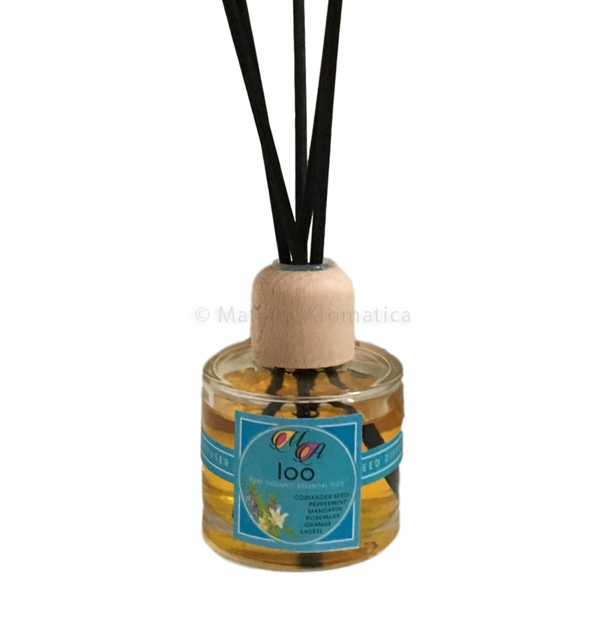 Comes in an attractive clear glass round bottle with a wooden collar and 5 black reeds. The bottle holds 80 ml of aromatic mix and lasts about 2 months.