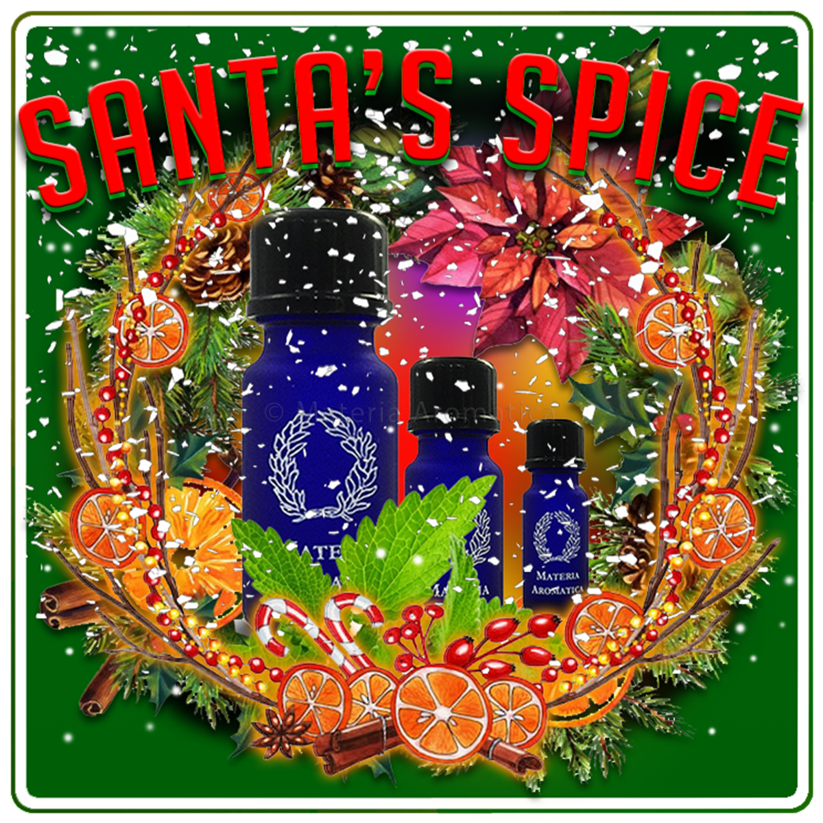Cinnamon, Clove bud, nutmeg, cardamon, ginger, orange, mandarin, bergamot, spearmint. sandalwood & patchouli